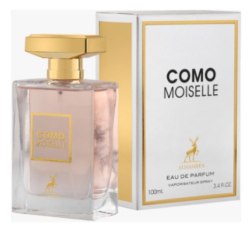 Como Moiselle" é um perfume feminino oriental floral, inspirado no famoso Coco Mademoiselle da Chanel, criado pela marca árabe Maison Alhambra. É descrito como elegante e sofisticado, com uma fragrância que combina notas cítricas, florais e amadeiradas, sendo uma alternativa mais acessível e com custo-benefício melho